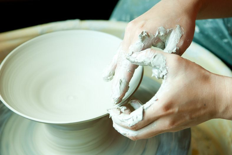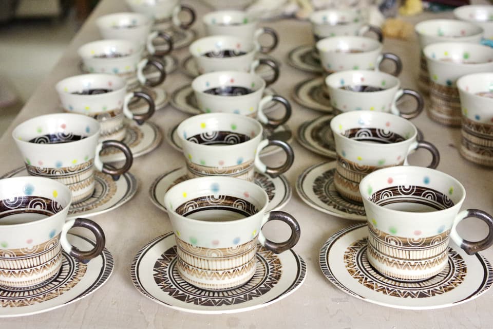 カップや円型のお皿などは、電動ロクロで制作しております。動物シリーズもパーツを分けてそれぞれ電動ロクロで作っています。