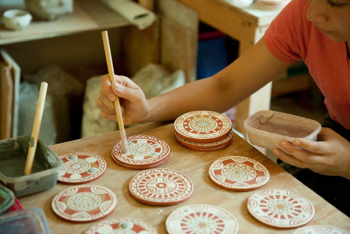 ロクロ以外に長細いお皿などは、粘土を板状に伸ばして作る「タタラ技法」で制作しているものもあります。