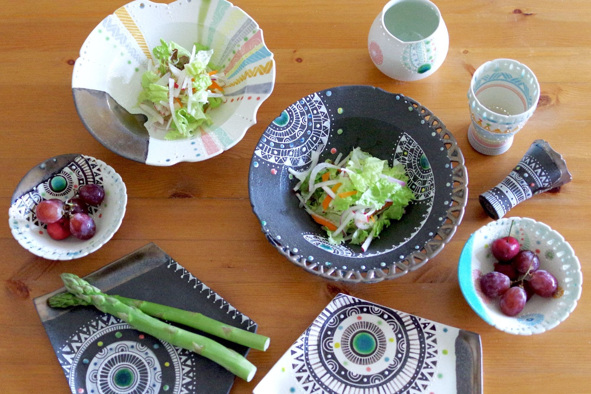 ロクロ以外に長細いお皿などは、粘土を板状に伸ばして作る「タタラ技法」で制作しているものもあります。