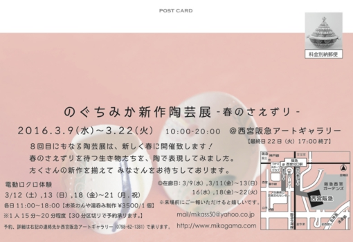 のぐちみか新作陶芸展-春のさえずり- /3.9wed-3.22tue